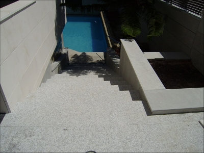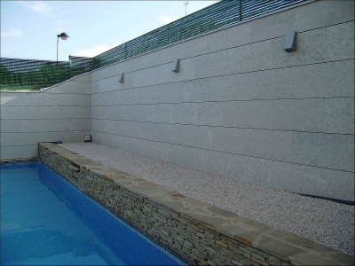 Elaboración de fachada ventilada con piedra caliza capri y piedra arenisca Galaxy. Los suelos de terraza exteriores se realizaron con granito gris alba con acabado abujardado. Proyecto realizado en Vivienda unifamiliar en Carcaixetn, valencia.